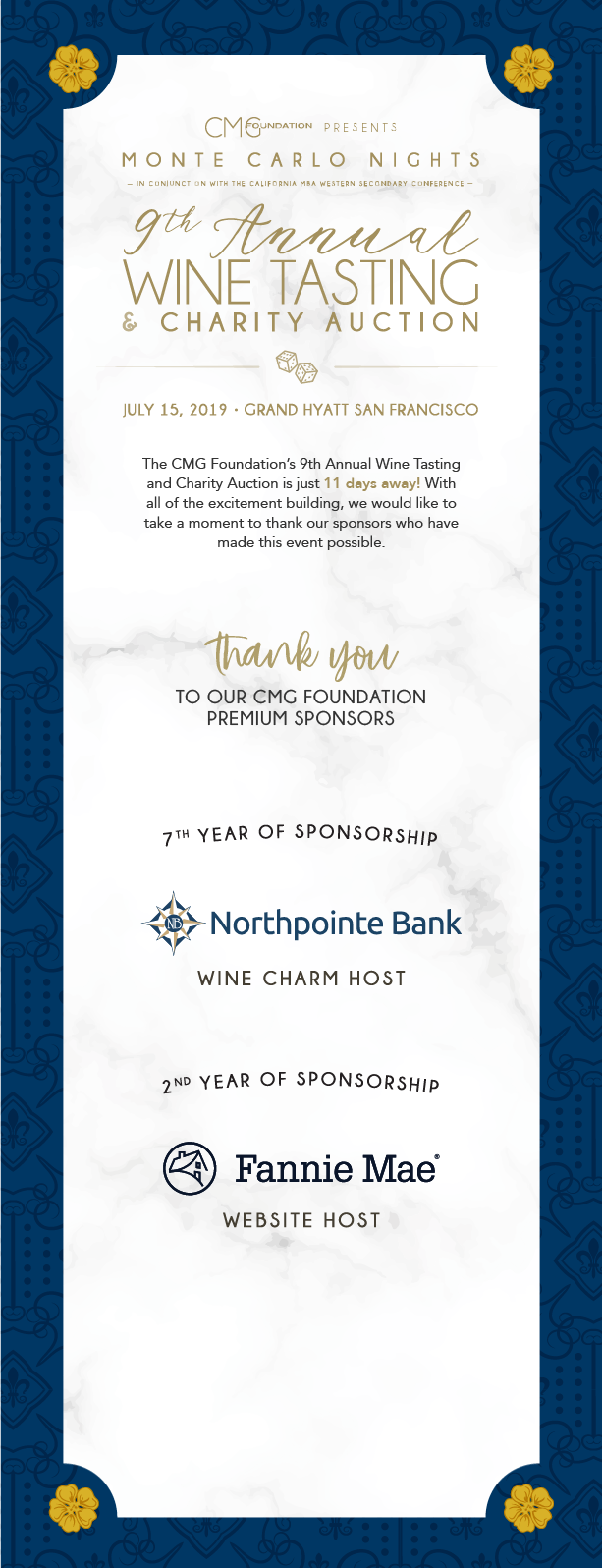 For questions regarding this year’s event, please contact CMG Foundation’s Events Coordinator Taylor Stevens at tstevens@cmgfi.com.