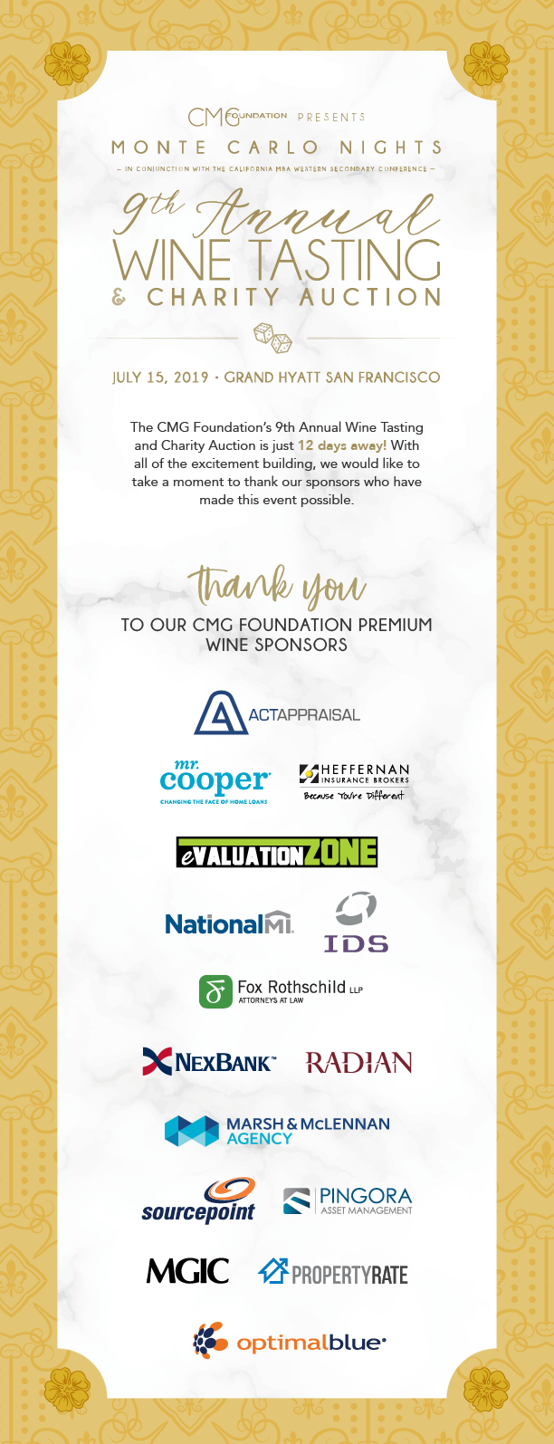 For questions regarding this year’s event, please contact CMG Foundation’s Events Coordinator Taylor Stevens at tstevens@cmgfi.com.