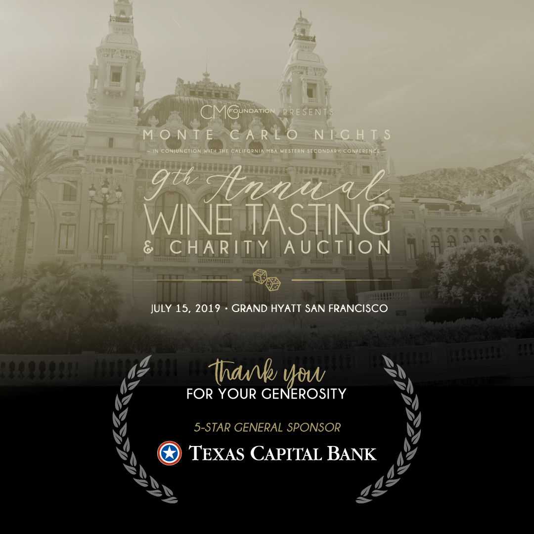 The CMG Foundation wishes to acknowledge and thank Texas Capital Bank for their seventh consecutive year of commitment and support to our Foundation and Beneficiaries. We cannot tell you enough how much it means for you all to join as our top presenting sponsor, and our CMG Foundation 5-Star General! A sincere and heartfelt thank you for once again showing our Foundation and those we support this great generosity. Join us on Monday, July 15th and help us thank them for standing by our side and making a difference in the world around us!